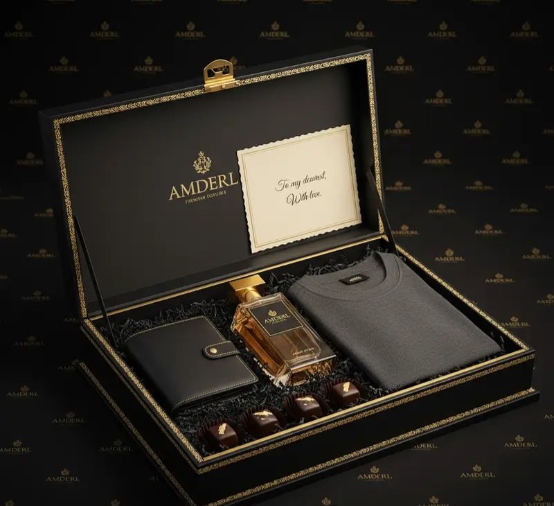 The Amderl Gentleman’s Luxe Box is a refined and thoughtful gift designed for the modern man who values style, comfort, and elegance. Perfect as a birthday gift for husband, gift box for him, gifts for father, or gifts for brother, this premium box brings together fashion essentials, rich fragrance, and sweet indulgence to create a memorable gifting experience.